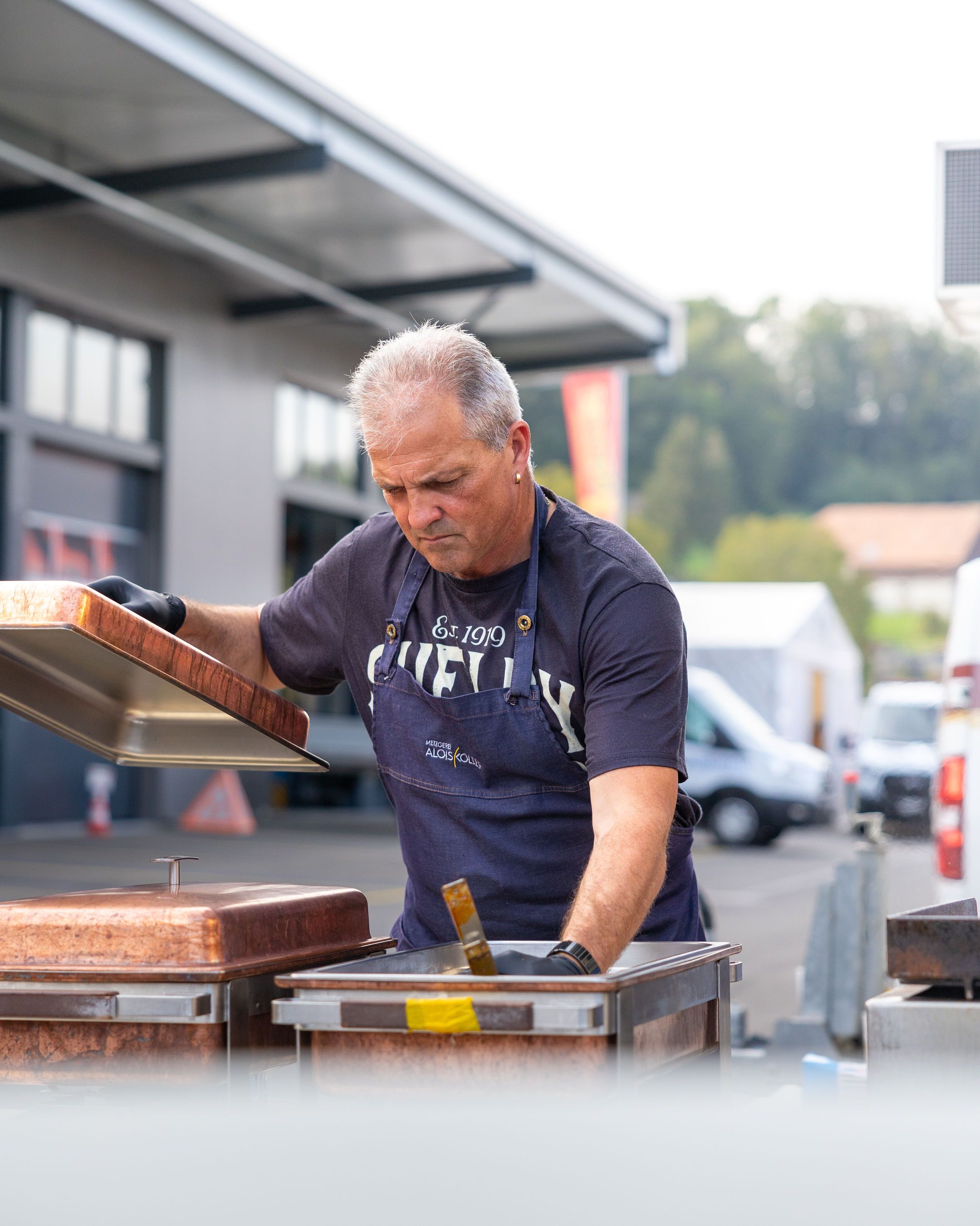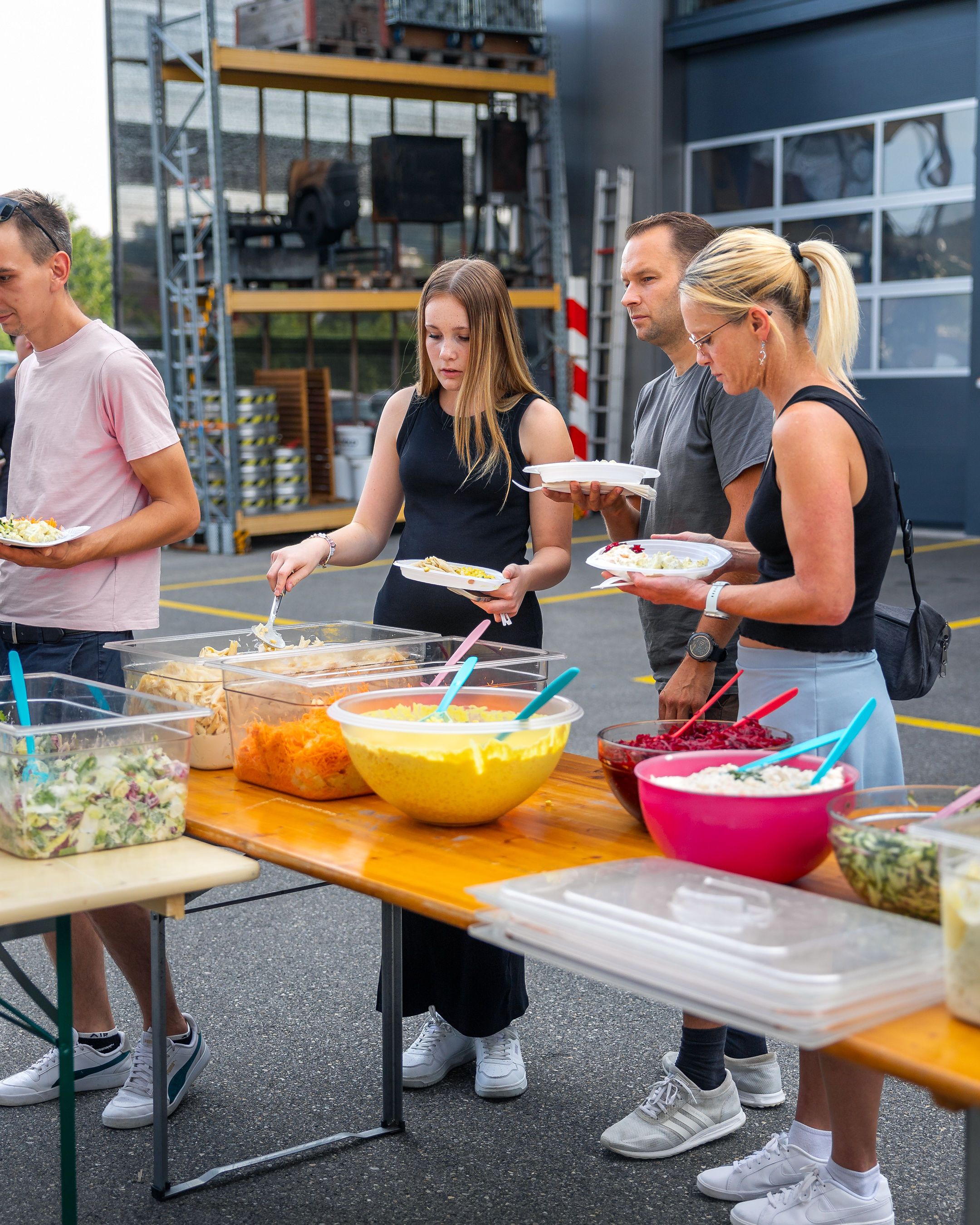 Es gibt erfrischende Getränke, ein vielfältiges Grillbuffet mit verschiedenen Salaten und Fleischspezialitäten von der Metzgerei Sandmeier. Zum Abschluss gibt es ein köstliches Dessertbuffet.